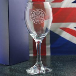 Celebrate the coronation of King Charles the III and the Queen Consort with our King’s Coronation Emblem white wine glass. Engraved with the official Coronation Emblem for HRH on 6th May 2023, this glass makes for a sentimental piece to remember the historic, regal event; perfect for coronation parties and celebrations, a gift for a royal family fan or even as a keepsake for the coronation, this glass suits all. The coronation emblem was created by Sir Jony Ive KBE and his creative collective LoveFrom, and displays St Edward’s crown comprised of the flora from the four nations of Great Britain. Etched with our laser engraving system, the emblem will be permanently etched into this glass, ensuring this keepsake will be lasting and cherished for years to come. A traditionally shaped wine glass that holds 11oz, this drinking glass is perfect for any white wine, as well as rose wine. This coronation glass is the perfect way to show support to the monarchy and a great token to remember the King’s Coronation.