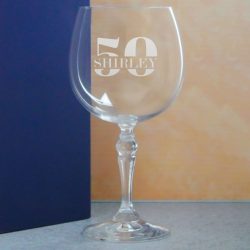 Get ready to add a splash of personality to your gift-giving game with this engraved gin glass! This striking cocktail glass features This striking cocktail glass features a large, bold design of the recipients age with their name written through the middle, creating an impressive birthday gift for any gin or cocktail lover alike; with the addition of their name, this creates a item that is uniquely theirs and makes for a thoughtful, affectionate present. The design and personalisation are laser-engraved onto the glass’s surface, making sure every detail stands out crisp and clear, and ensures a lasting sentimental gift. Completed with a tastefully designed gift box, the glass is presented tastefully to the recipient, saving the hassle of gift wrapping and presentation. The box features a transparent window, offering a preview of the gift it holds. Standing at 205mm tall and 97mm wide, the glass boasts both practicality and tradition with it’s classic balloon design, offering a large capacity that’s tailored for any cocktail (especially G&Ts). Whether as a gift for your best friend, celebrating an anniversary or just to show someone how much they mean to you, this engraved gin glass is ready to make a statement – it’s a thoughtful gift that perfectly blends the fun of a casual hangout with the sentiment of a heartfelt keepsake.