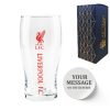 This classic pint glass is the perfect gift for someone who is an Everton fan. Make it personal with your choice of sentimental message or simply their name. You can also choose from a hand picked selection of fonts to suit any occasion, making it a thoughtful gift for Fathers Day or Birthdays. Whether drowning sorrows or toasting goals, you can show your support for your football team in style. Each glass is state of the art laser engraved, arriving bubble wrapped and gift boxed, ready to be gifted. The glass holds up to 570ml or 20oz, great for pouring refreshing cans of beer into while having space for rising foam. This glass is hand wash only, we recommend washing it before first use and between uses. We take pride in crafting each order precisely as specified, so please take a moment to double-check your personalisation details to ensure there are no spelling or grammar mistakes. If you have any issues with your order, please do not hesitate to contact us, as our customer service team will be happy to help.