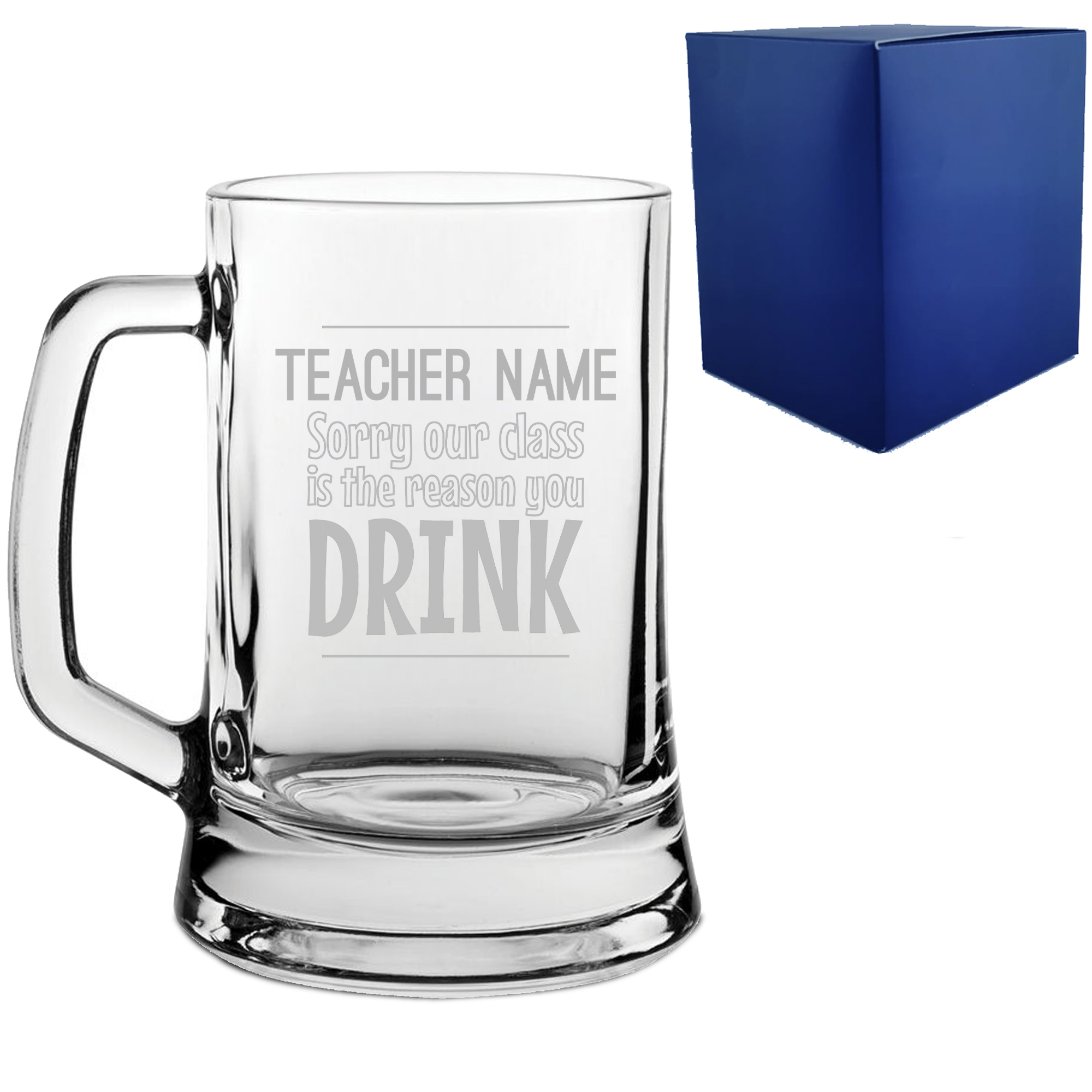 Engraved Teacher Beer Mug with Sorry Our Class is the Reason You Drink Design