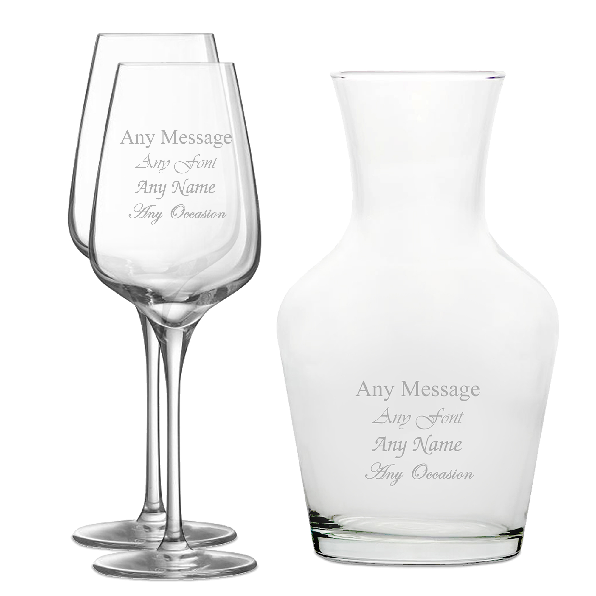 Personalised Engraved Set of 2 Sublym Wine Glass and 1 Litre Vin Carafe Set