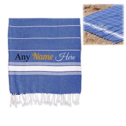 Personalise your towel with any message! This super soft, luxurious Turkish towel is an ideal gift for swimmers, beach-goers or just for the bathroom, and with various fonts and text colours to choose from, all that’s missing is your personalisation.This towel measures to 90cm x 170cm, and is made from 100% cotton. A soft towel, this is perfect for picnics and beach trips, and also offers itself as a thin blanket.Your towel will arrive folded and ready to be gifted or presented in your bathroom, and as the printed customisation is permanent, you won�t have to worry about washing your personalisation off.