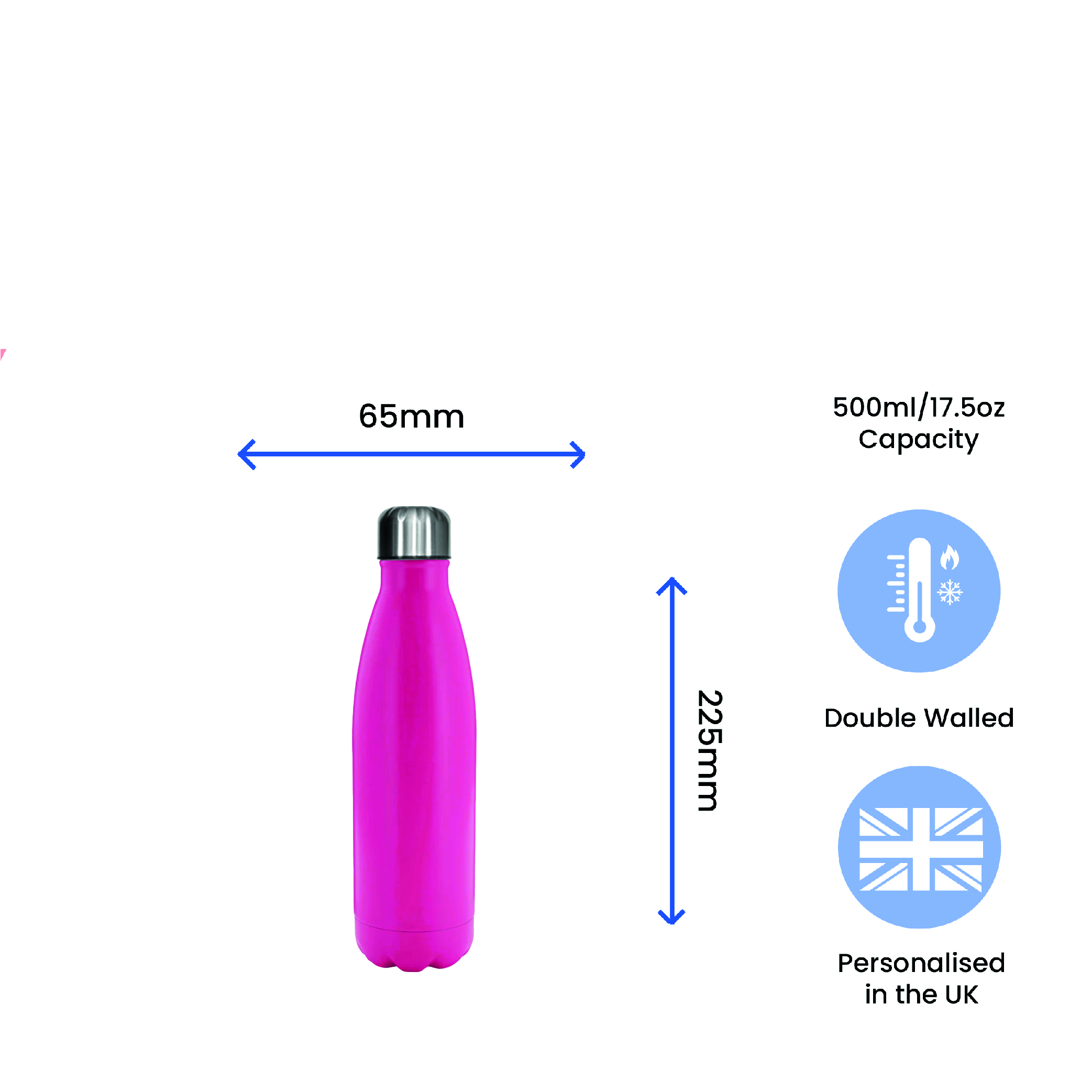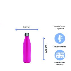Printed Deep Pink Thermal Bottle, Any Message, Stainless Steel 500ml/17oz