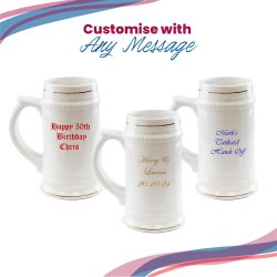 Personalise this unique beer mug with any text and font making it a perfect special gift for any occasion . This versatile ceramic mug is designed to hold a generous 560ml (22oz) of your favourite hot or cold beverages. You have the freedom to choose from a curated selection of handpicked fonts and colours to ensure it perfectly reflects your unique style and sentiment. Not only does this mug hold drinks but it’s substantial weight means that it can be displayed as a decorative piece, making it both stylish and functional. We recommend giving the mug a gentle wash before its first use and after each subsequent use. This will help prevent staining and ensure your mug always looks fresh and pristine. We take pride in making each order precisely as specified so please take a moment to double check your personalisation details to make sure there are no spelling or grammar mistakes. If you encounter any issues with your order, don’t hesitate to contact us. Our dedicated customer service team is here to assist you.